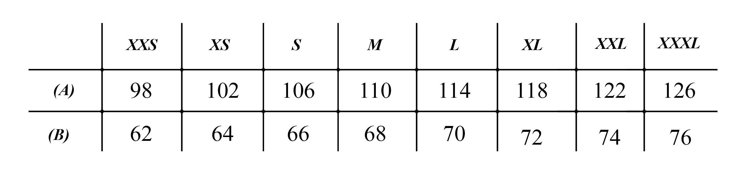 Size table Man +-2 cm